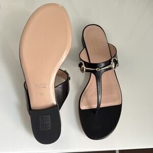 These Gucci Thong Sandals feature the iconic Horsebit at the front in light gold-tone.