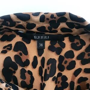 GUCCI Leopard Cheetah Print Silk Cape Shirt 38
