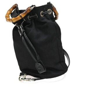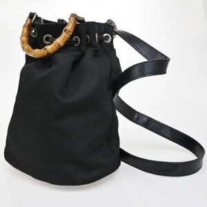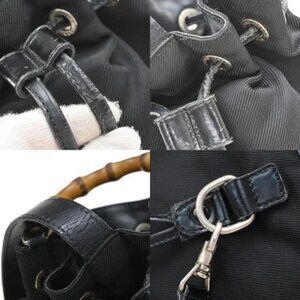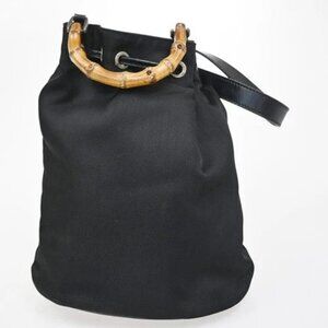 GUCCI Logo Bamboo 2Way Shoulder Hand Bag Canvas Leather Black SHW 01EG221