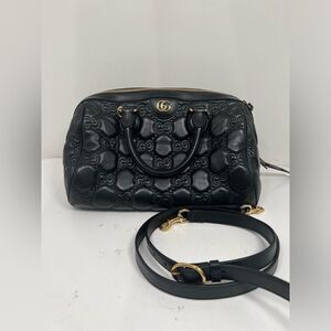 GUCCI Logo GG Matelasse 2Way Travel Shoulder Hand Bag Leather Black
