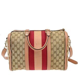 GUCCI Logo GG Pattern 2Way Shoulder Hand Bag Canvas Leather Brown Pink 81EF690