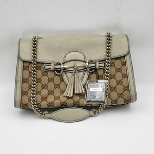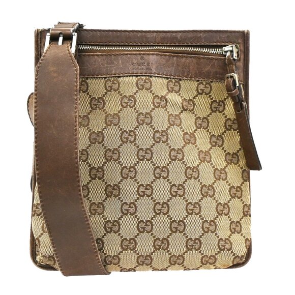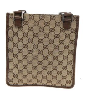 GUCCI Logo GG Pattern Crossbody Shoulder Bag Canvas Leather Brown SHW 02CA568
