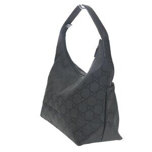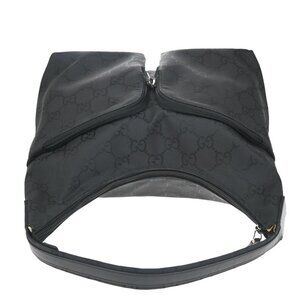 GUCCI Logo GG Pattern Hobo Shoulder Bag Nylon Leather Black SHW Italy 31YH460
