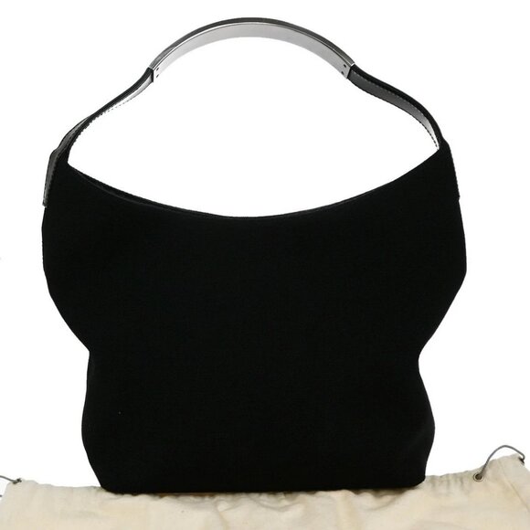 GUCCI Logo GG Pattern Hobo Shoulder Bag Nylon Leather Black SHW Italy
