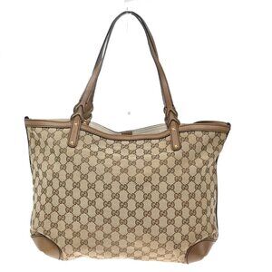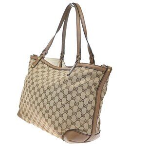 GUCCI Logo GG Pattern Shoulder Tote Bag Canvas Leather Brown Italy