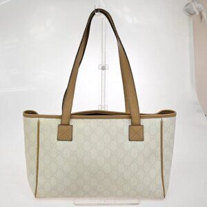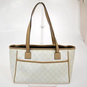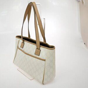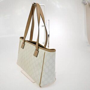 GUCCI Logo GG Shoulder Tote Bag PVC Leather White GHW Italy
