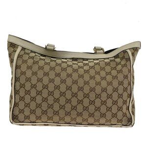 GUCCI Logo GG pattern Shoulder Tote Bag Canvas Leather Brown Beige Italy
