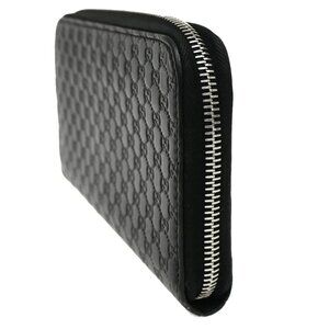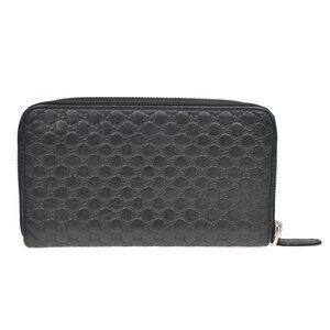 GUCCI Logo Guccissima GG Pattern Long Zipper Wallet Leather Black