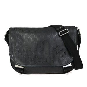 GUCCI Logo Imprime GG Pattern Shoulder Bag PVC Leather Black SHW Italy 34YH650