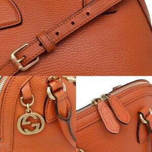 GUCCI Logo Interlocking G 2Way Shoulder Hand Bag Leather Orange GHW 93KB068