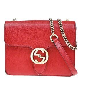 GUCCI Logo Interlocking G Chain Mini Shoulder Bag Leather Red GHW Italy