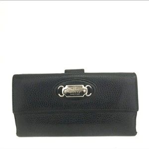 GUCCI Logo Plate Leather Bifold Long Wallet