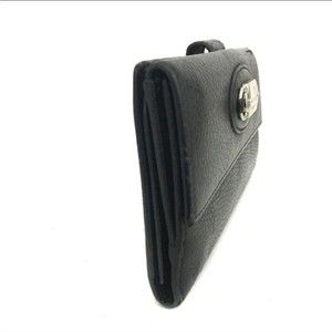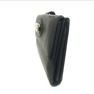 A pre-owned .GUCCI Logo Plate Leather Bifold Long Wallet