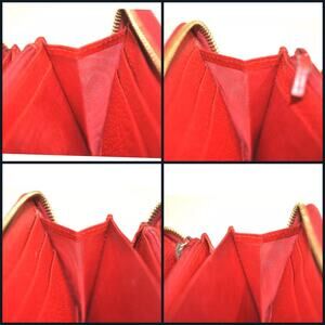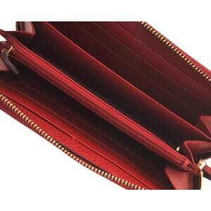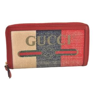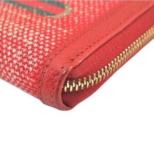 GUCCI Logo Print Long Wallet Purse Canvas Leather Red