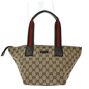 GUCCI Logo Sherry GG Pattern Hand Bag Canvas Leather Brown Italy
