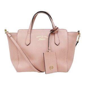 GUCCI Logo Swing Mini 2Way Shoulder Hand Bag Leather Pink GHW Italy 16KA851