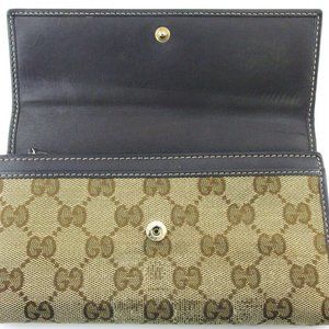 GUCCI Long Wallet GG Canvas Beige Canvas x Leather Authentic