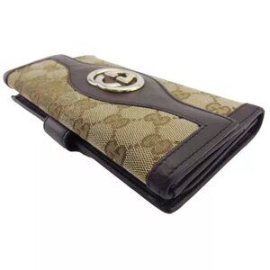 GUCCI Long Wallet GG Canvas Beige Canvas x Leather Authentic Used