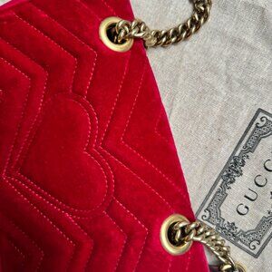 GUCCI - MATELASSE -VELVET HIBISCUS RED GC MARMONT MINI FLAP BAG