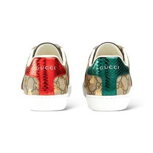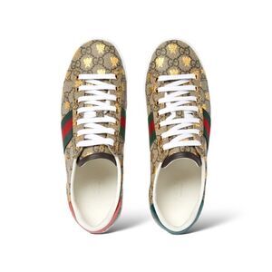 Since its debut, the Ace sneaker has become a mainstay of the House's collections. The retro-looking design is inspired by a Gucci sneaker from the 1970s, with the Web stripe along the sides. The low-top silhouette has been embellished with metallic gold bees.