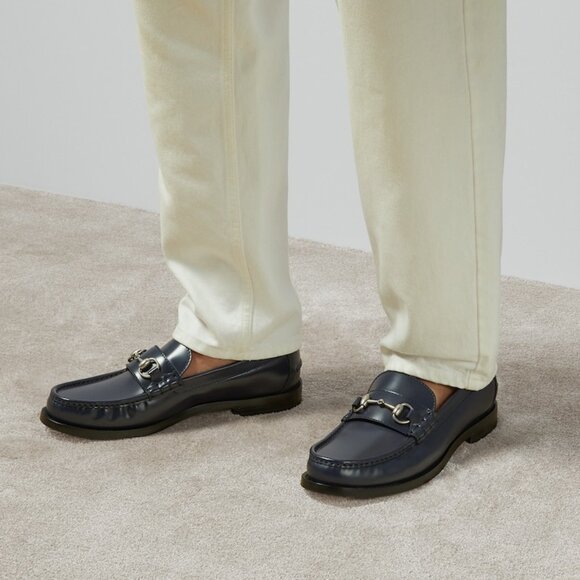 GUCCI MEN'S CURRENT BLACK LEATHER HORSEBIT DETAIL LOAFER'S SHOES size 42