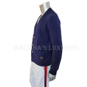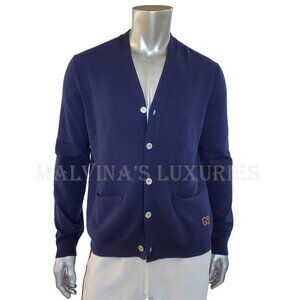 GUCCI MENS SWEATER BLUE CASHMERE CARDIGAN w GG LOGO EMBROIDERY sz XL