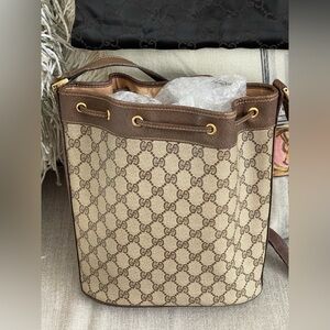 GUCCI 𝑉𝑖𝑛𝑡𝑎𝑔𝑒 MONOGRAM BUCKET DRAWSTRING BAG W/GUCCI DUST BAG🎬💯Authentic