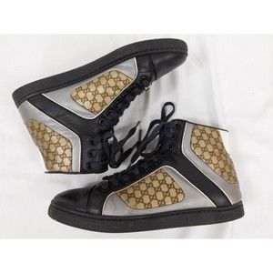GUCCI MONOGRAM LEATHER HIGH TOP SNEAKERS SZ 36