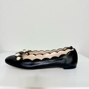 GUCCI Malaga Kid Black Leather Ballet Flats Size 37.5 with Pearls