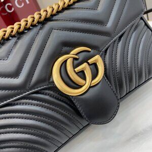 "Super pretty, elegant, authentic GUCCI marmont Crossbody bag. In excellent brand new condition, just worn a few times. No flaws, scratches, or wear and tear. Super clean on inside no stains. Can be worn as a crossbody or shoulder bag.