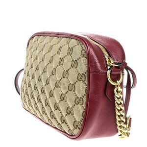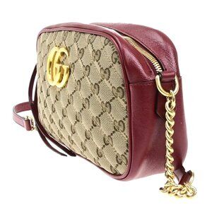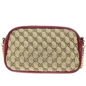 GUCCI Marmont GG Pattern Chain Shoulder Bag Canvas Leather Brown Red