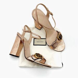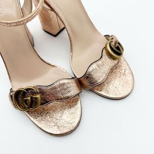 GUCCI Marmont Rose Gold Sandals Size 39 Metallic Leather Block Heel Ankle Strap