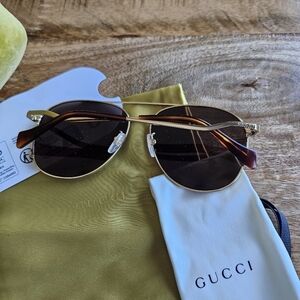 GUCCI Men's 61mm aviator sunglasses Gg0969s Brown Gold Authentic New