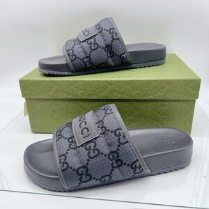 GUCCI Mens GG LOGO Ripstop Monogram Gray Slides Sandals 771466 Men UK 12 US 12.5