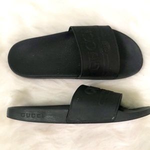 Men's US 10 Black GUCCI Slide Sandals AUTHENTICATED