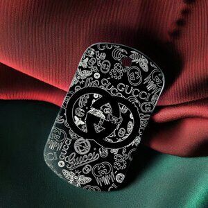 Add a bold statement of luxury to your everyday essentials with this black GUCCI metal bag tag, exclusively available on eBay. Whether you clip it to your designer purse, backpack, or tote, this sleek, dog tag-shaped accessory instantly elevates your style with its iconic GUCCI logo boldly engraved in crisp white. Modern, minimalist, and undeniably high fashion.