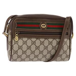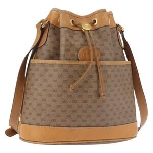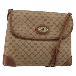 GUCCI Micro GG Canvas Chain Shoulder Bag Suede Brown Gold Auth BA6560