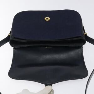GUCCI Micro GG Canvas Shoulder Bag Navy Gold