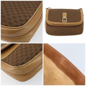 GUCCI Micro GG Canvas Shoulder Bag PVC Beige Gold