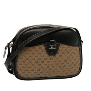 GUCCI Micro GG Canvas Shoulder Bag PVC Leather Beige Black Auth