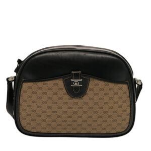GUCCI Micro GG Canvas Shoulder Bag Pvc Leather Beige Black