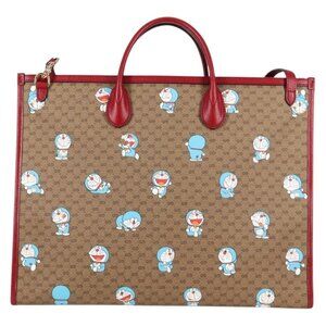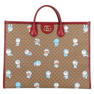 GUCCI Micro GG Supreme Doraemon Hand Bag PVC 2way Brown Gold 653952 Auth 131782A
