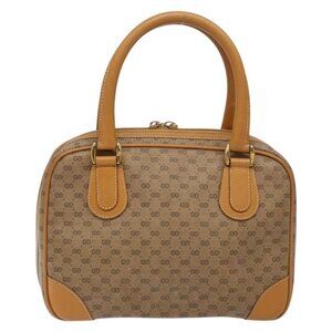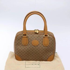 GUCCI Micro GG Supreme Hand Bag PVC Beige Gold Auth