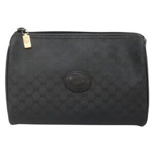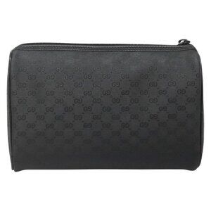 GUCCI Micro GG Supreme Pouch PVC Black Gold Auth 133307