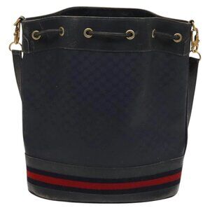 GUCCI Micro GG Supreme Sherry Line Shoulder Bag PVC Navy Gold Auth 125756
