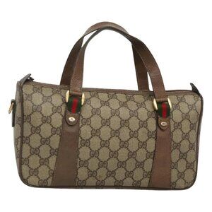 GUCCI Micro GG Supreme Web Sherry Line Hand Bag PVC 2way Beige Gold Auth BD1742