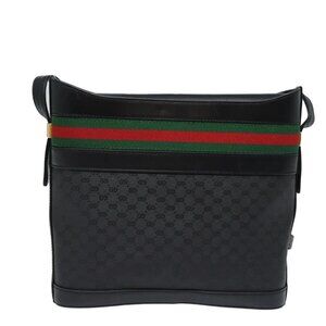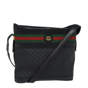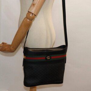 GUCCI Micro GG Supreme Web Sherry Line Shoulder Bag PVC Black Gold Auth 85498