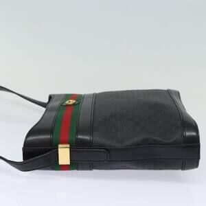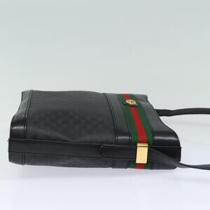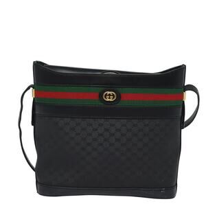 GUCCI Micro GG Supreme Web Sherry Line Shoulder Bag Pvc Black Gold