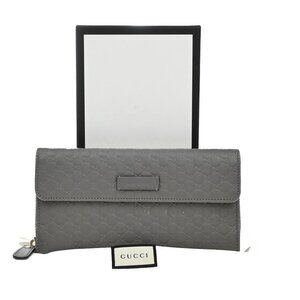 GUCCI Micro Guccissima GG Pattern Long Zipper Wallet Leather Gray Gold 69EF697