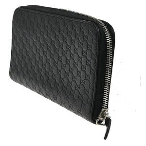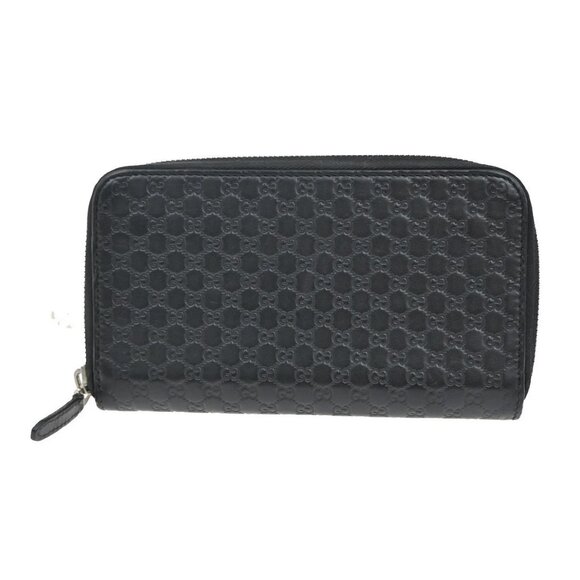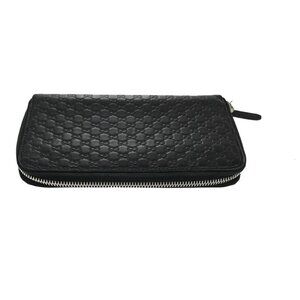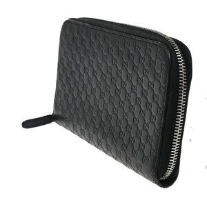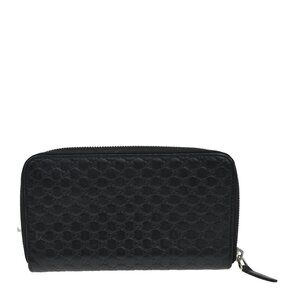 GUCCI Micro Guccissima GG Pattern Zip Around Long Wallet Leather Black